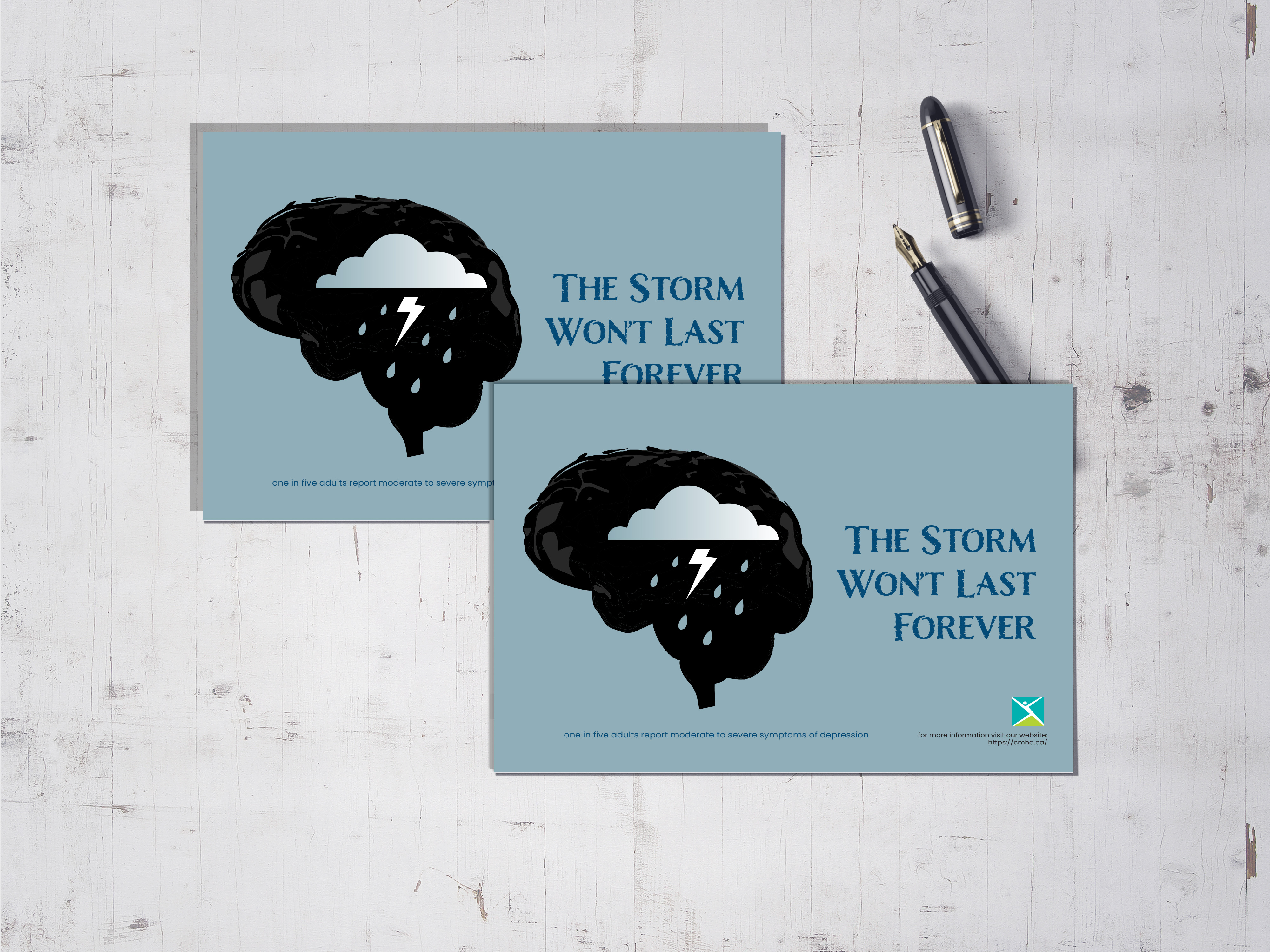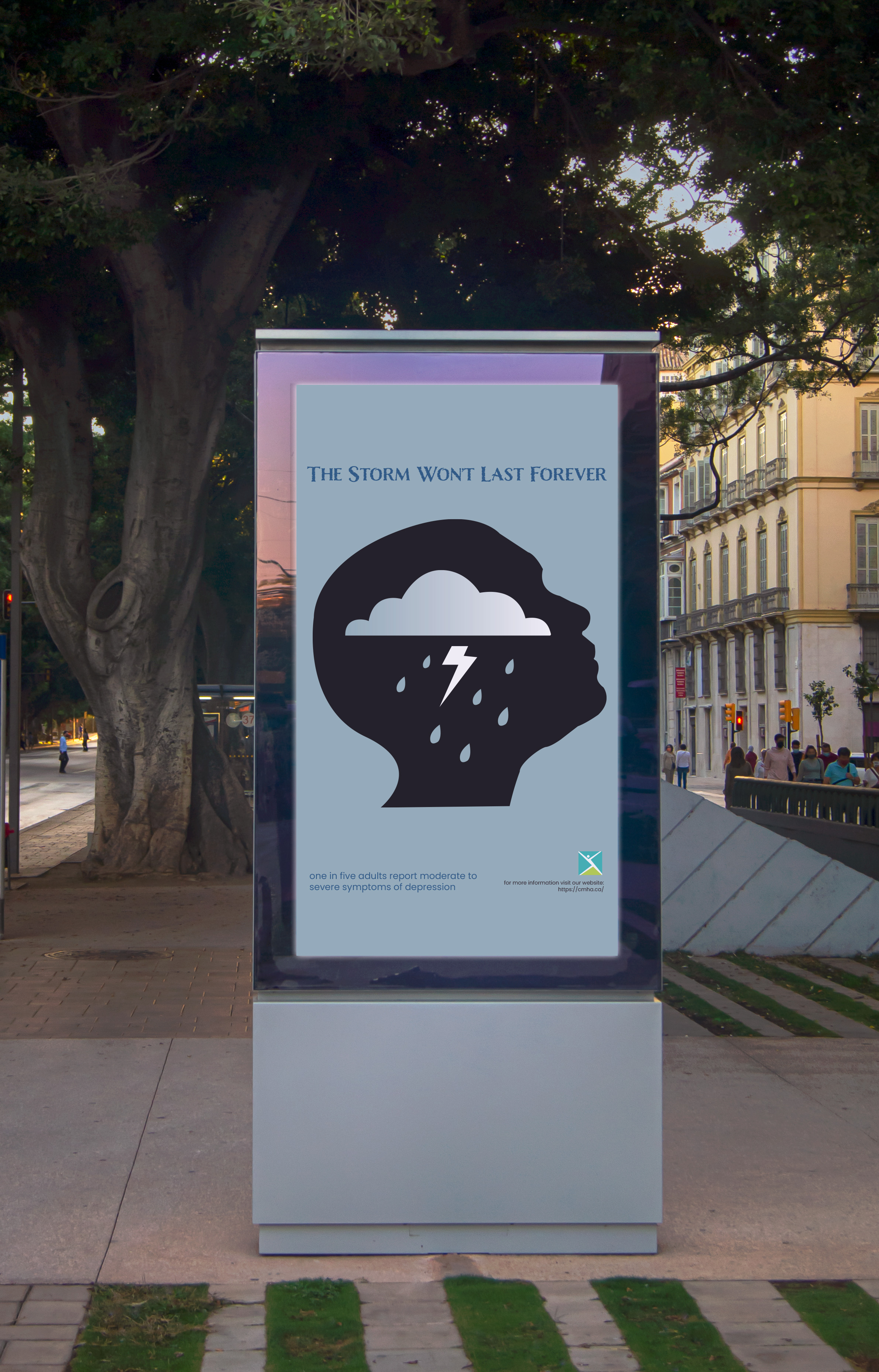 For my public awareness campaign project, I chose to address the topic of mental health. I conducted thorough research on my selected topic to gather the most important information and data, as well as visual references from previous campaigns and ads related to the issue. Based on my findings, I created an original concept that communicated an original message with the image of a storm affecting people’s minds, hearts, and well-being. The campaign also featured the tagline “The storm won’t last forever” to enhance its impact.