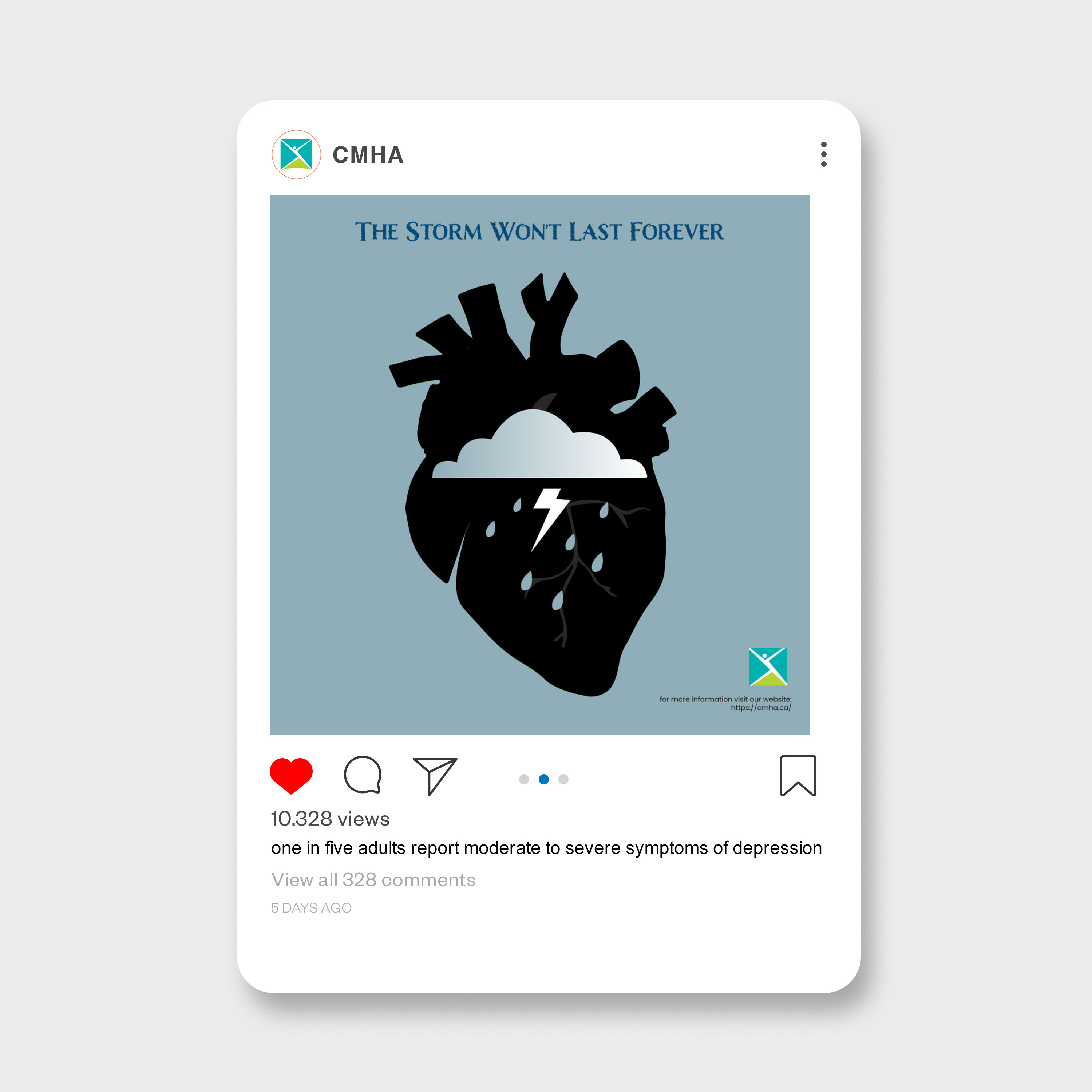 Additionally, I incorporated statistics about depression among adults in Canada to anchor the ad and encourage the audience to take action. The campaign also included the logo and website of the Canadian Mental Health Association, a relevant organization that supports the cause and provides further resources for individuals seeking help or more information.