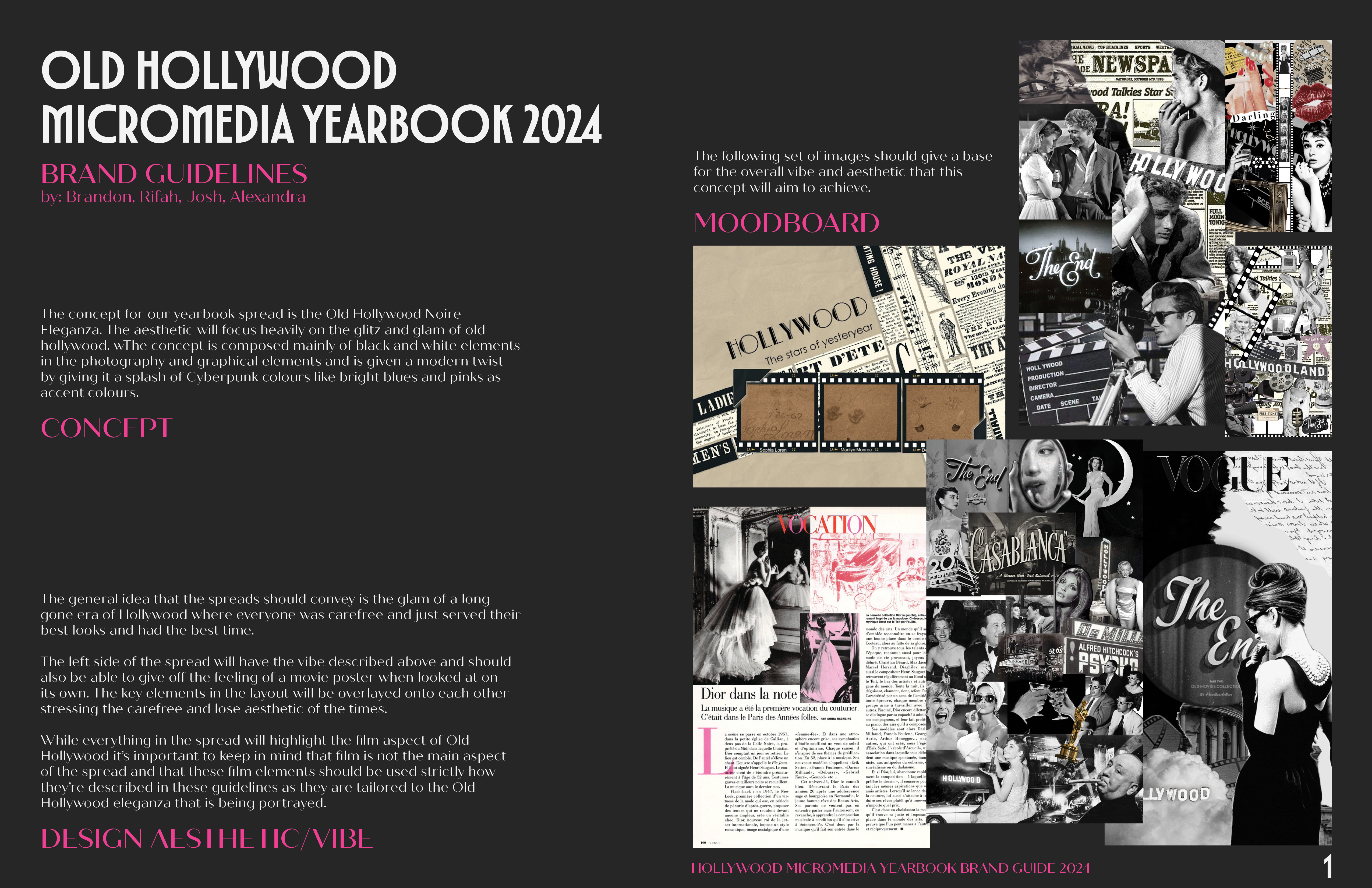 Each team created a comprehensive brand guide that will influence the design direction of the 2025 yearbook. The guide included the brand’s visual identity, a mood board, a sample spread, and a clear concept. Key elements that were addressed in the guide included colors, typography, photography style, graphic elements, rules for Photoshop, and specific guidelines on how to use photography and graphic images, along with any variations.