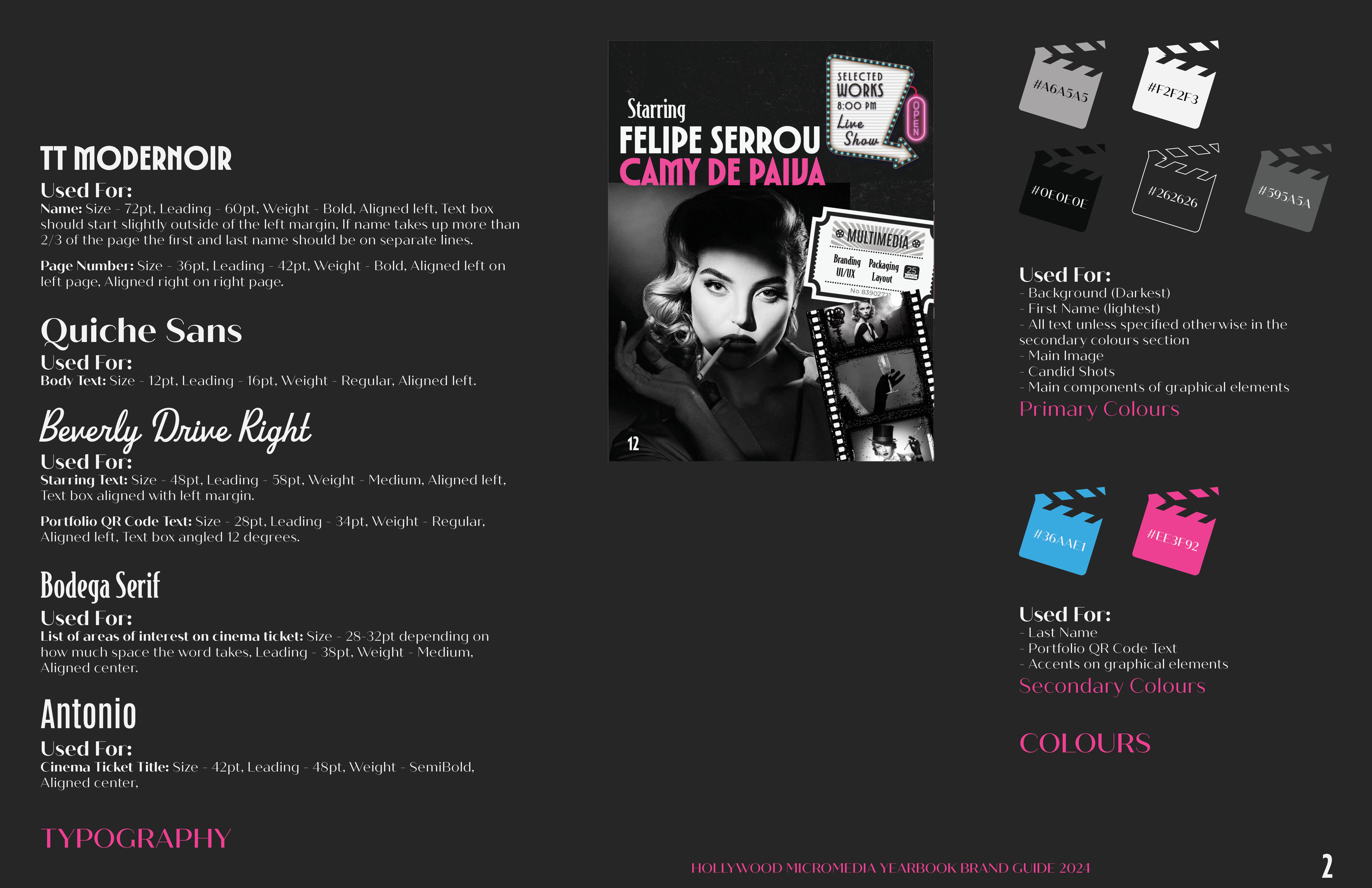 For the 2025 yearbook design, our year was seperated into six competing teams. Each team was competing against each other to get their brand guide chosen for the 2025 yearbook spread. My team ultimately ended up winning the competition.